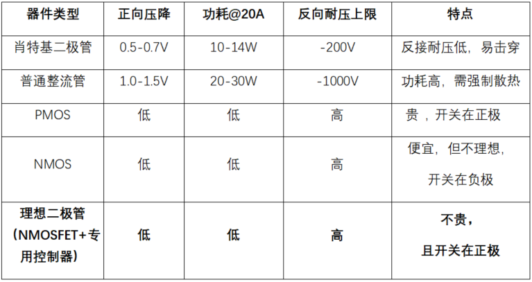 三、Traditional diode PK Ideal diode, as shown in the table below: