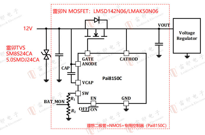 Lei Mou has achieved this by scientifically combining TVS and ideal diodes. Not only does this solve the power consumption and reliability issues of traditional diodes, but it also enables the establishment of a surge protection system that complies with international standards.。