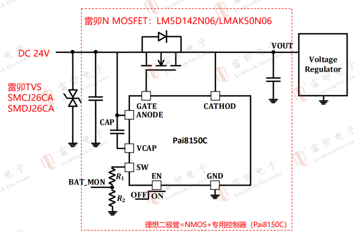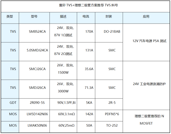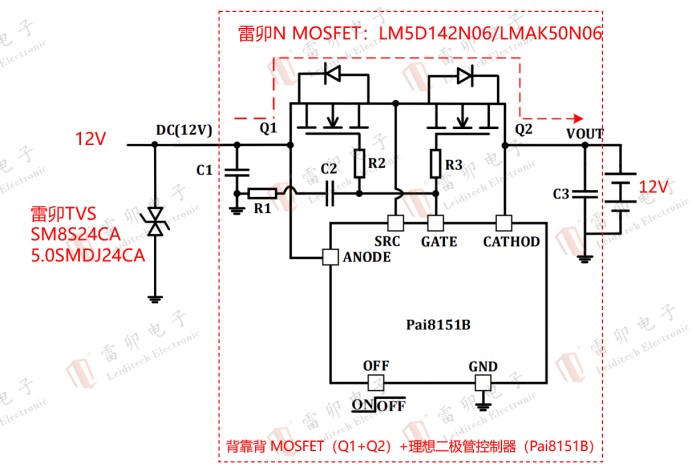 四.Leiditech TVS + Ideal Diodes, 12V/24V DC Power Surge Protection Solution: