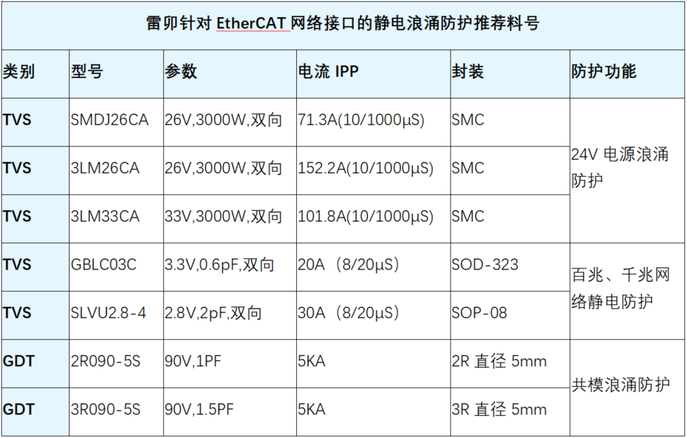 The EtherCAT interface must simultaneously meet the industrial EMC mandatory standards and the requirements of the protocol itself. Together, these two factors determine the selection of protective devices.