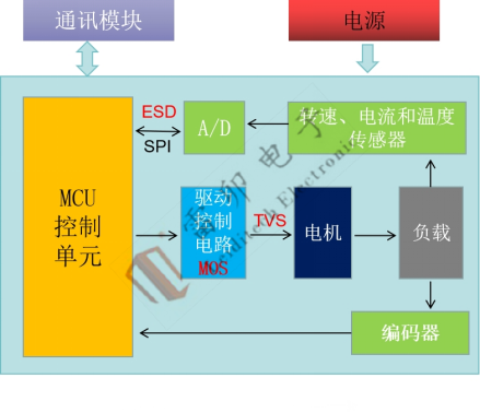 In praktischen Anwendungen verfügt die Steuerplatine über verschiedene Schnittstellen zur Verbindung nach außen, wie Motorschnittstelle, Encoder-Feedback-Schnittstelle, Sensor-Feedback-Schnittstelle, serielle Kommunikation oder drahtlose Modulkommunikation. Diese Schnittstellen werden beim Ein- und Ausstecken leicht durch Überspannungen beschädigt, so dass antistatischer Überspannungsschutz erforderlich ist.