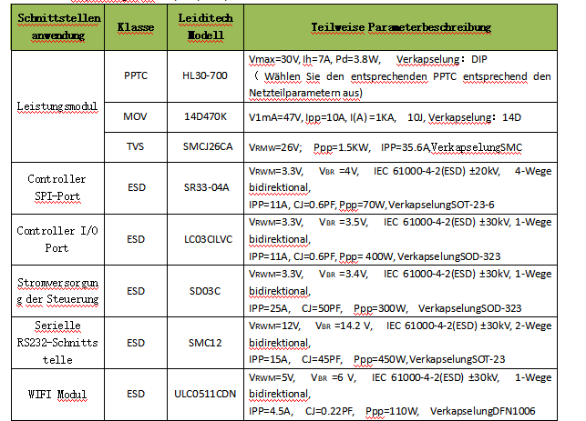 1. Empfehlungen für TVS/ESD/PPTC/MOV
