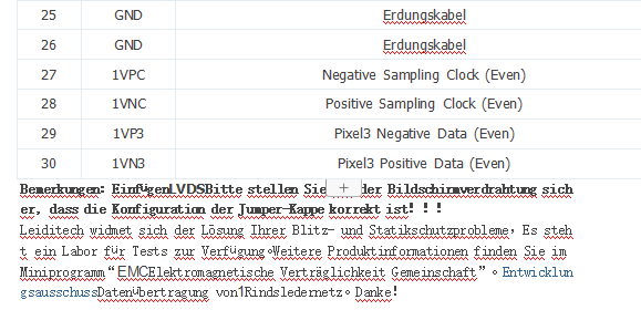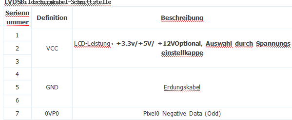 1*LVDS Schnittstelle(Ein Kanal/Doppelpfad,6 Position/8 Position),Unterstützung 7"-108"Bildschirm 1080P 60Hz |