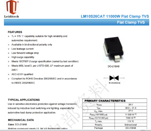 Dieses Gerät hat auch die Eigenschaften von niedrigem Leckstrom, niedriger Kapazität und geringer Verzerrung, die stabil in verschiedenen rauen Umgebungen arbeiten können. Daher ist es auch weit verbreitet in Bereichen wie Automobilelektronik, Kommunikationsausrüstung und industrielle Steuerung. Wenn Sie eine effiziente und zuverlässige Schaltungsschutzkomponente benötigen, ist dieses TVS Ihre beste Wahl.
