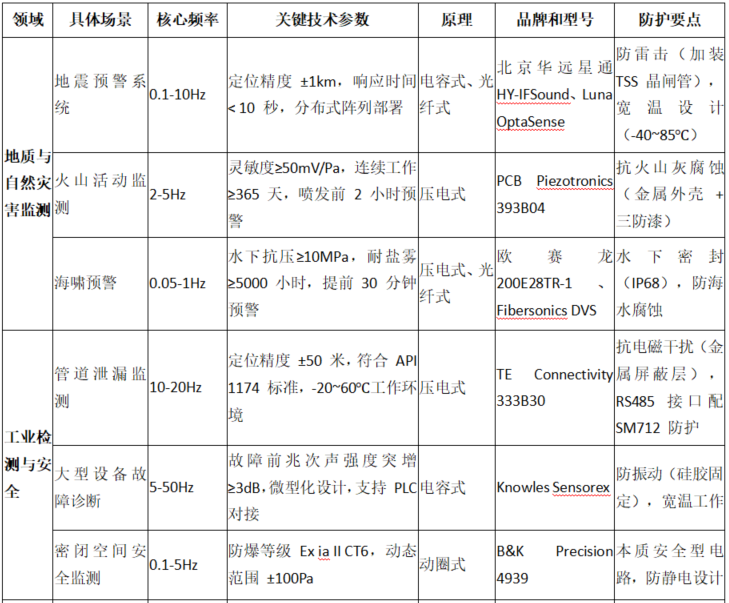 Working principle: The infrasound sensor is used to detect sound wave signals with frequencies less than 20Hz. The core principle is to convert mechanical vibration into electrical signals. Different types of sensors achieve this conversion based on different physical mechanisms. The summary of their principle characteristics, compatible models and typical application scenarios is as follows:
