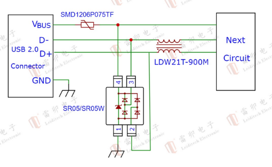 USB 2.0 interface: For example, the hkc-17d produced by Huakoo Electronics uses USB communication. Leiditech has adopted a single component SR05W for USB 2.0 electrostatic protection to meet IEC61000-4-2, level 4, contact discharge 30kV, air discharge 30kV, ensuring the stability of industrial transmission.。