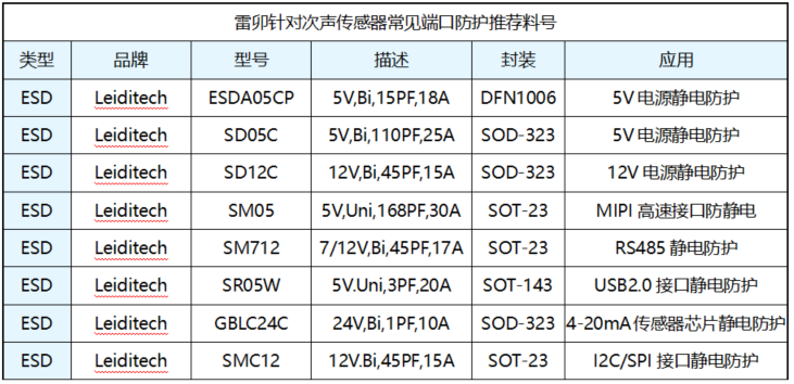 I2C/SPI interface: Leiditech adopts SMC12 to protect the I2C and SPI interfaces. Each chip can protect 2 differential lines, saving space and providing large current protection. It meets IEC61000-4-2, level 4, with 8kV contact discharge and 15kV air discharge.。