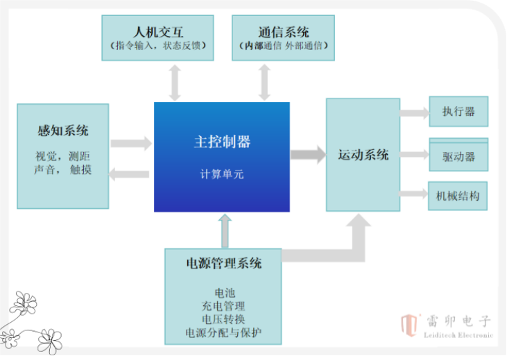 1、Main controller/computing unit: The "brain" of the robot. It is usually a computing platform composed of high-performance processors (such as CPU, GPU, NPU), running operating systems, AI algorithms, path planning, decision-making control, etc.