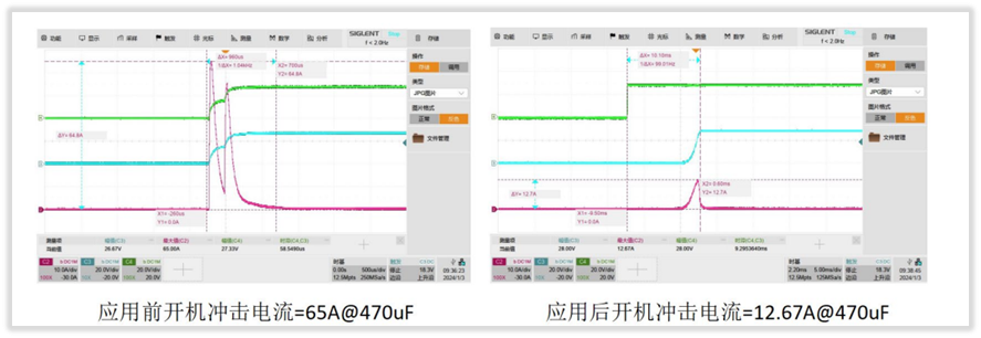 DO-160G clearly stipulates: "The transient current during the startup of onboard equipment should be less than 10 times the rated current". However, when an UAV is powered on, the charging of capacitors can generate a 65A surge current (in the case of a 470μF capacitor), which far exceeds the standard limit.