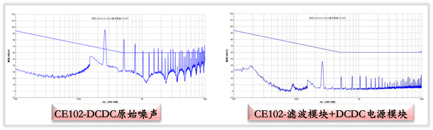 Conduction emission test: The noise level was reduced by 32 dB compared to the situation without the module installed, which was much better than the standard limit.