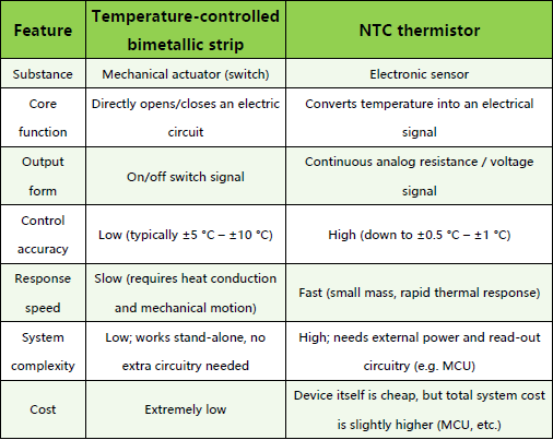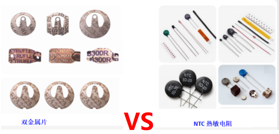 1.Temperature-controlled bimetallic strip vs. NTC thermistor