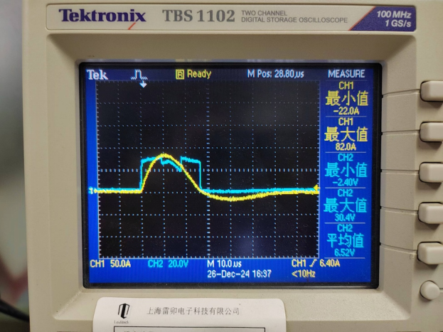 O es wird eine mit strom versorgende quelle verwendet, die die wellenwellenwellen überwacht und die zeit des aufstiegs der strom vor und nach TVS überwacht;